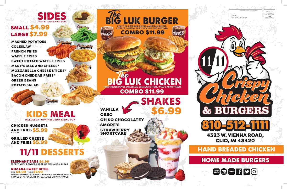 Introducing the menu at 11/11 Crispy Chicken & Burgers - Waterford is a culinary delight that promises a burst of flavors with every bite. Located at 7660 Highland Rd, Waterford Township, MI, this eatery specializes in crispy fried chicken that is hailed by customers for its remarkable taste and texture. The menu features an impressive variety of offerings, from succulent chicken tacos and hearty Big Luk Burgers to an exceptional homemade chicken pot pie that has garnered rave reviews.